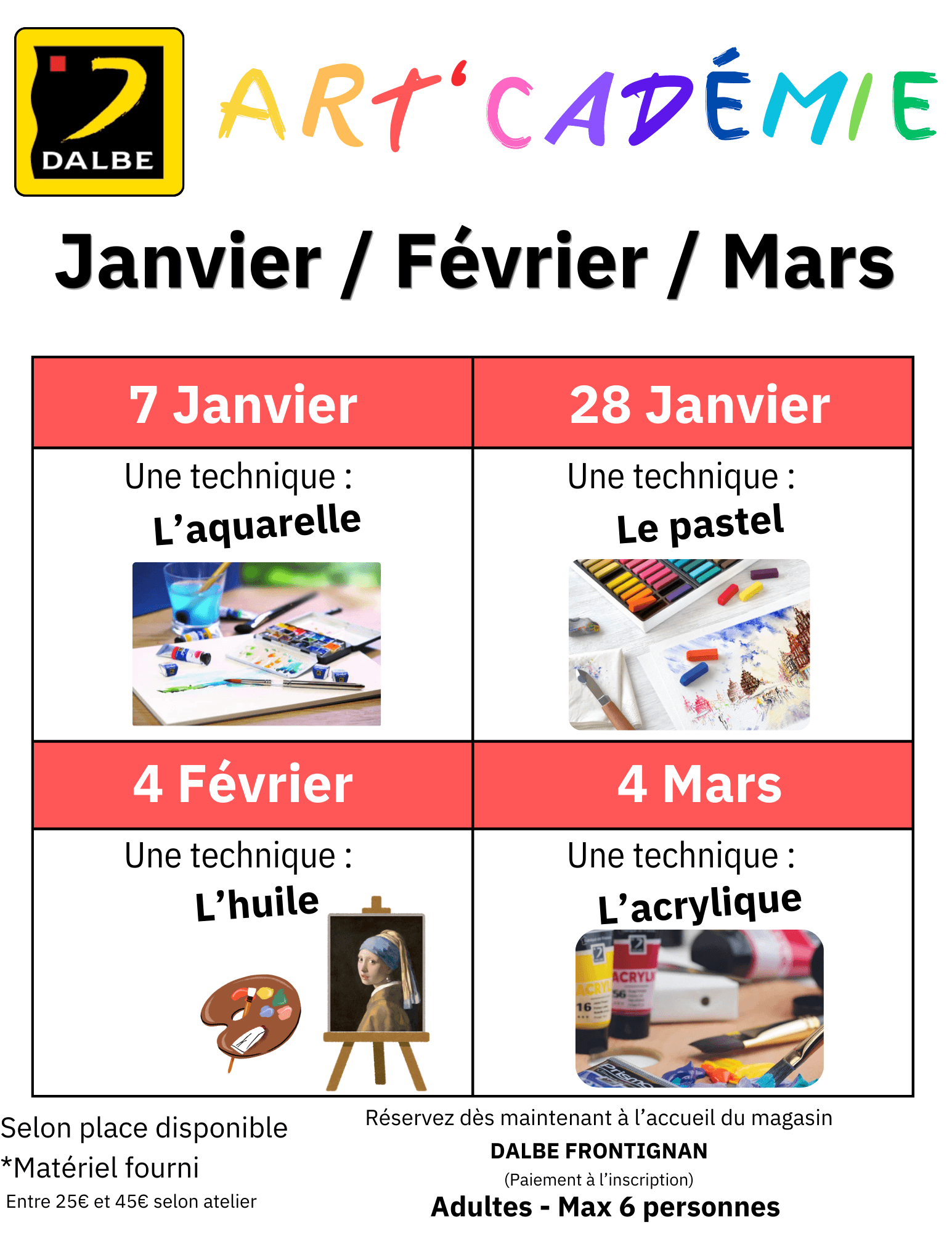 🖌 Des démonstrations en magasin pour découvrir de nouvelles techniques et matériaux.