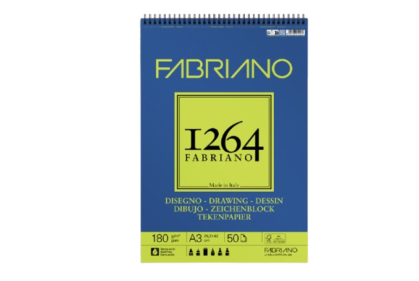 Ainsi les papiers de la gamme Fabriano 1264 ne jaunissent pas dans le temps et les couleurs ne seront pas altérées. Ici albums spirale petit côté, 180 gr/m² en format A3, A4 et A5.