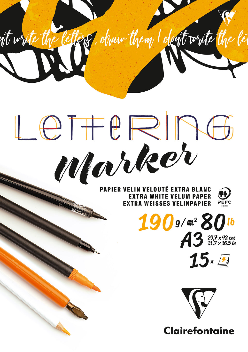 Spécialement conçu pour le lettering et les Arts graphiques, ce papier vélin velouté extra-blanc 190g/m² offre une expérience créative unique. Sa surface parfaitement lisse permet une précision optimale des détails très fins de tous les travaux graphiques – que ce soit pour les lettering, l’élaboration de logos ou la création de nouveaux caractères de polices.