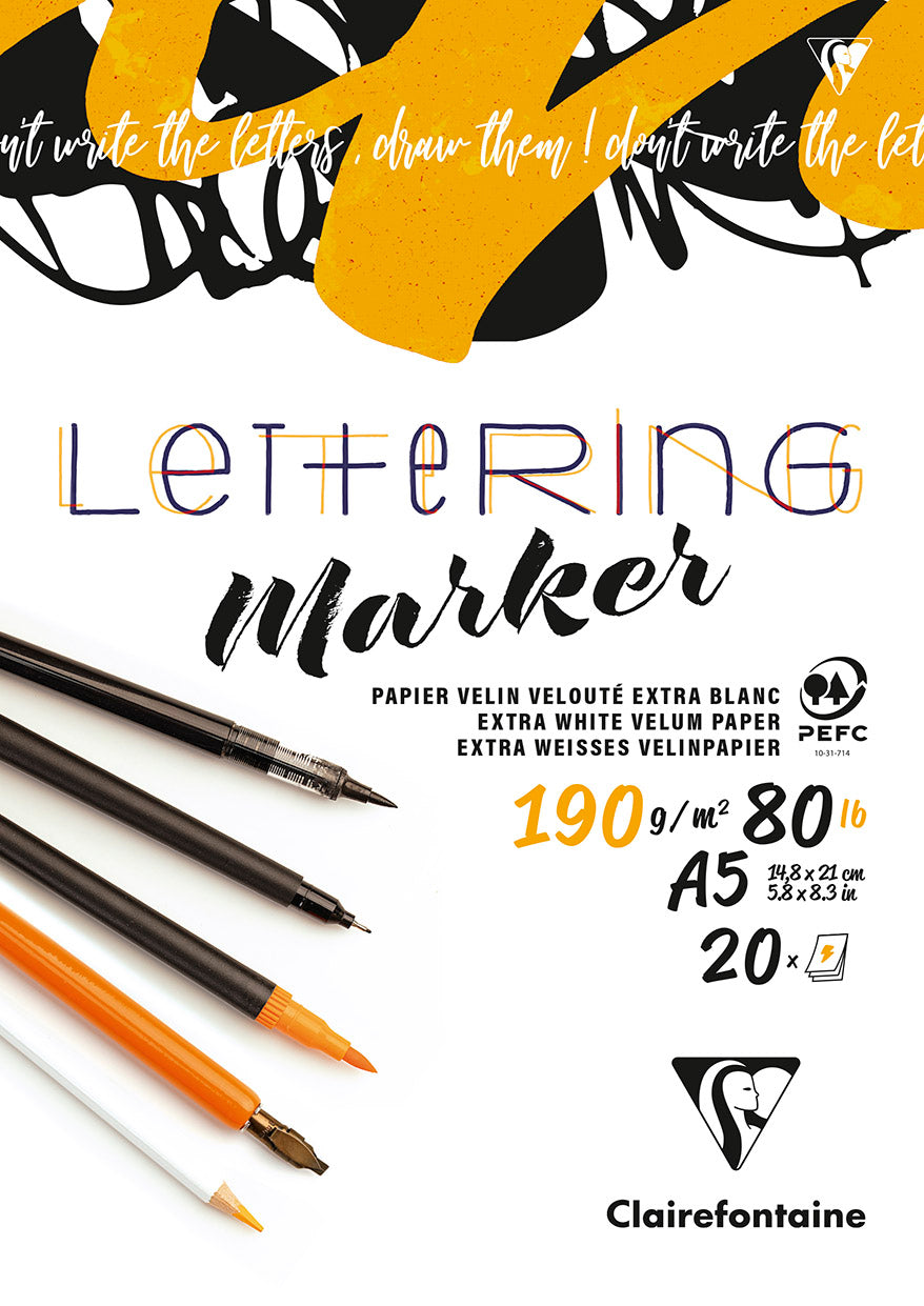 Bloc lettering A5 - 20 feuilles - 190g/m²- Clairefontaine