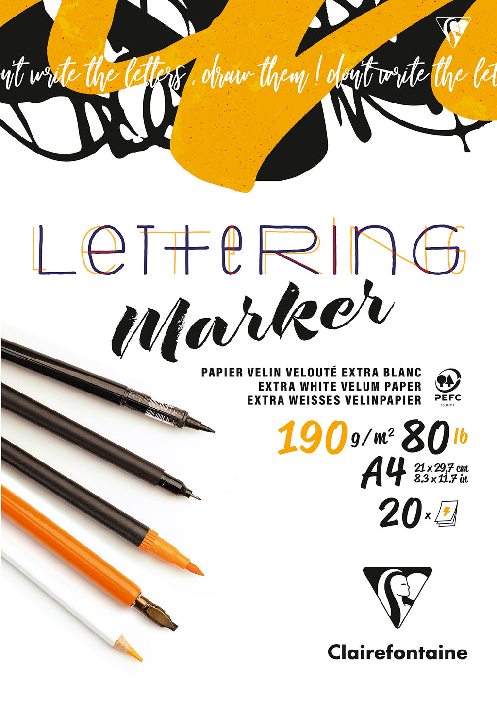 Spécialement conçu pour le lettering et les Arts graphiques, ce papier vélin velouté extra-blanc 190g/m² offre une expérience créative unique. Sa surface parfaitement lisse permet une précision optimale des détails très fins de tous les travaux graphiques – que ce soit pour les lettering, l’élaboration de logos ou la création de nouveaux caractères de polices.