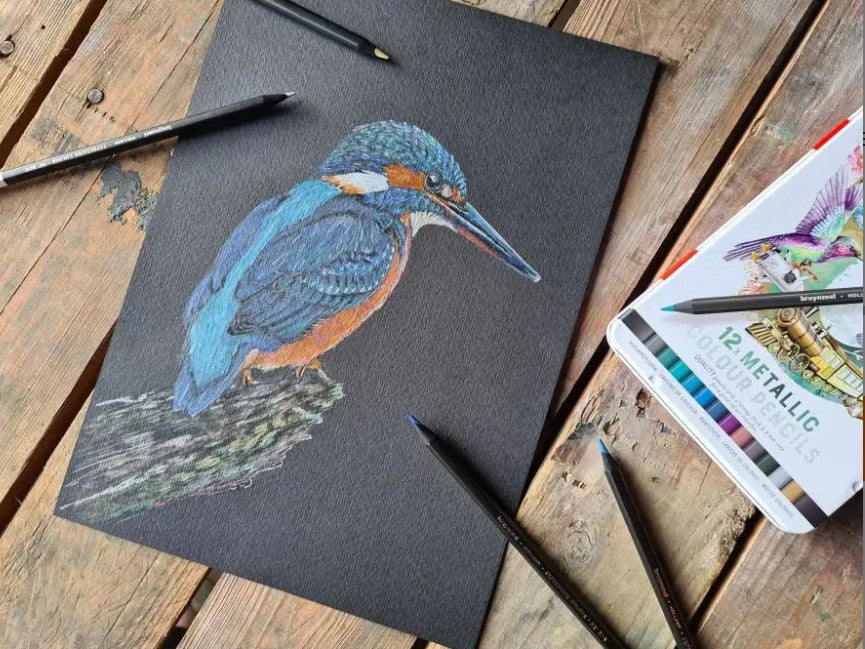 12 crayons de couleur de haute qualité dans des teintes métalliques. Les crayons ont une mine solide et épaisse de 3,3 mm avec des pigments de haute qualité pour un transfert de couleur extra-bon.