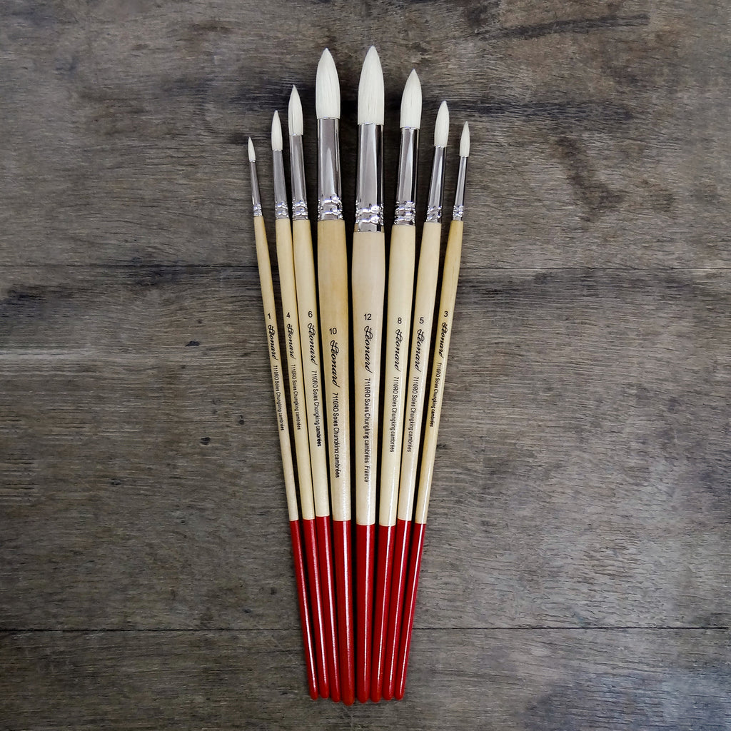 LA SÉRIE 7110RO (pointe ronde) est parfaite pour les détails, contours, retouches et finitions. Il existe 9 tailles.