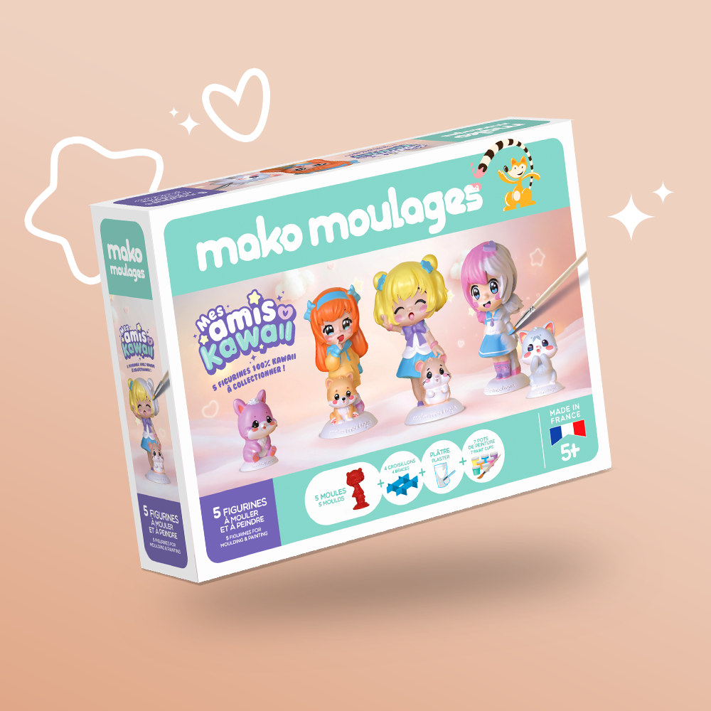 Un coffret créatif pour les enfants à partir de 5 ans pour mouler, démouler et peindre d'adorables personnages Kawaï et leurs petits compagnons.