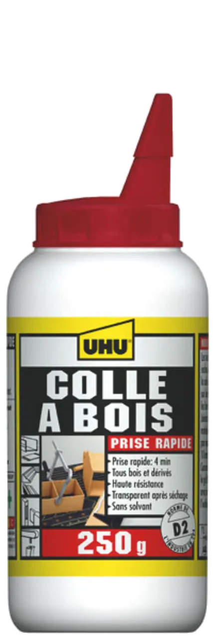 Colle à bois blanche de qualité supérieure, rapide (temps de séchage de 4 minutes), résistante à l'humidité (EN 204 D2) et convenant pour une utilisation à l'intérieur. Transparente après séchage. Plus solide que le bois. Pour assembler et stratifier pratiquement toutes les sortes de bois durs, tendres et exotiques.