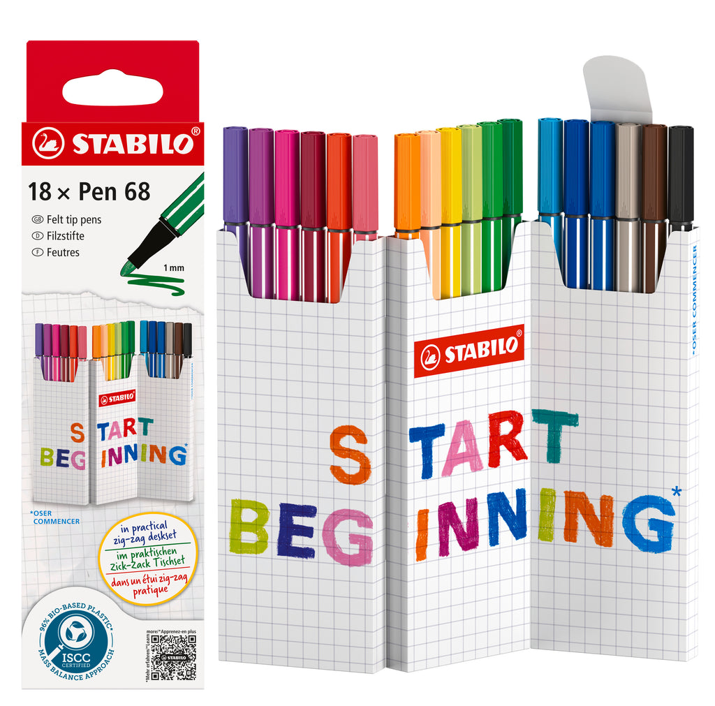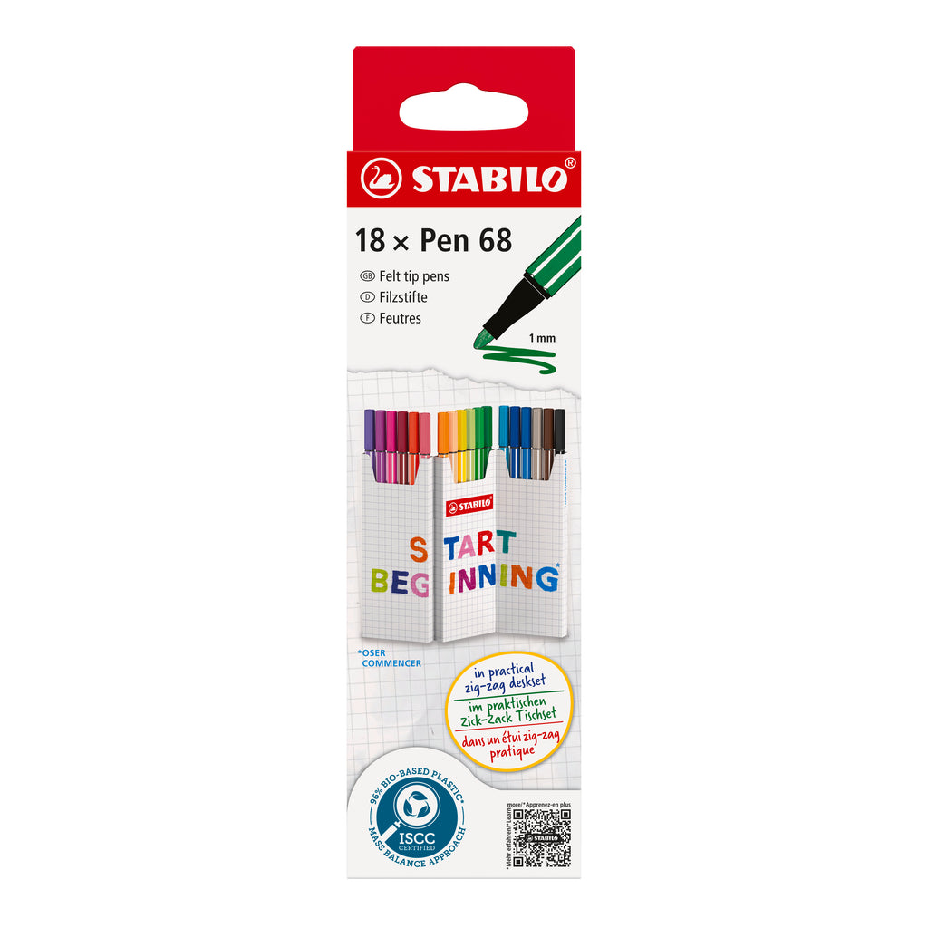 Fabriqué par STABILO en Allemagne et issu du savoir-faire Beaux-Arts de la marque, le feutre STABILO Pen 68 est une référence pour le dessin depuis 1966. Il est doté d’une pointe ogive robuste permettant un tracé d’1 mm d'épaisseur et son encre inodore à base d’eau se décline en 65 couleurs lumineuses et intenses. Polyvalent, le feutre STABILO Pen 68 est parfait pour dessiner, colorier, remplir de grands aplats, mais aussi créer des effets d'aquarelle, réaliser un bullet journal ou des mandalas. Il sera l'allié de toutes vos créations, à l'école ou à la maison, pour un usage amateur ou professionnel. Grâce à un procédé anti dessèchement, STABILO Pen 68 peut rester ouvert jusqu’à 24 heures sans sécher : parfait pour créer sans limite !