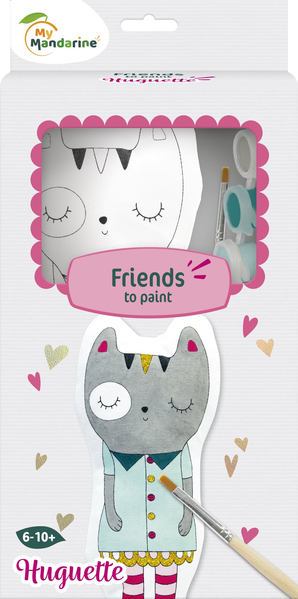 Contenu : 1 animal en coton imprimé de 24cm, 1 pinceau, 6 flacons de peinture et 1 tube de paillettes.