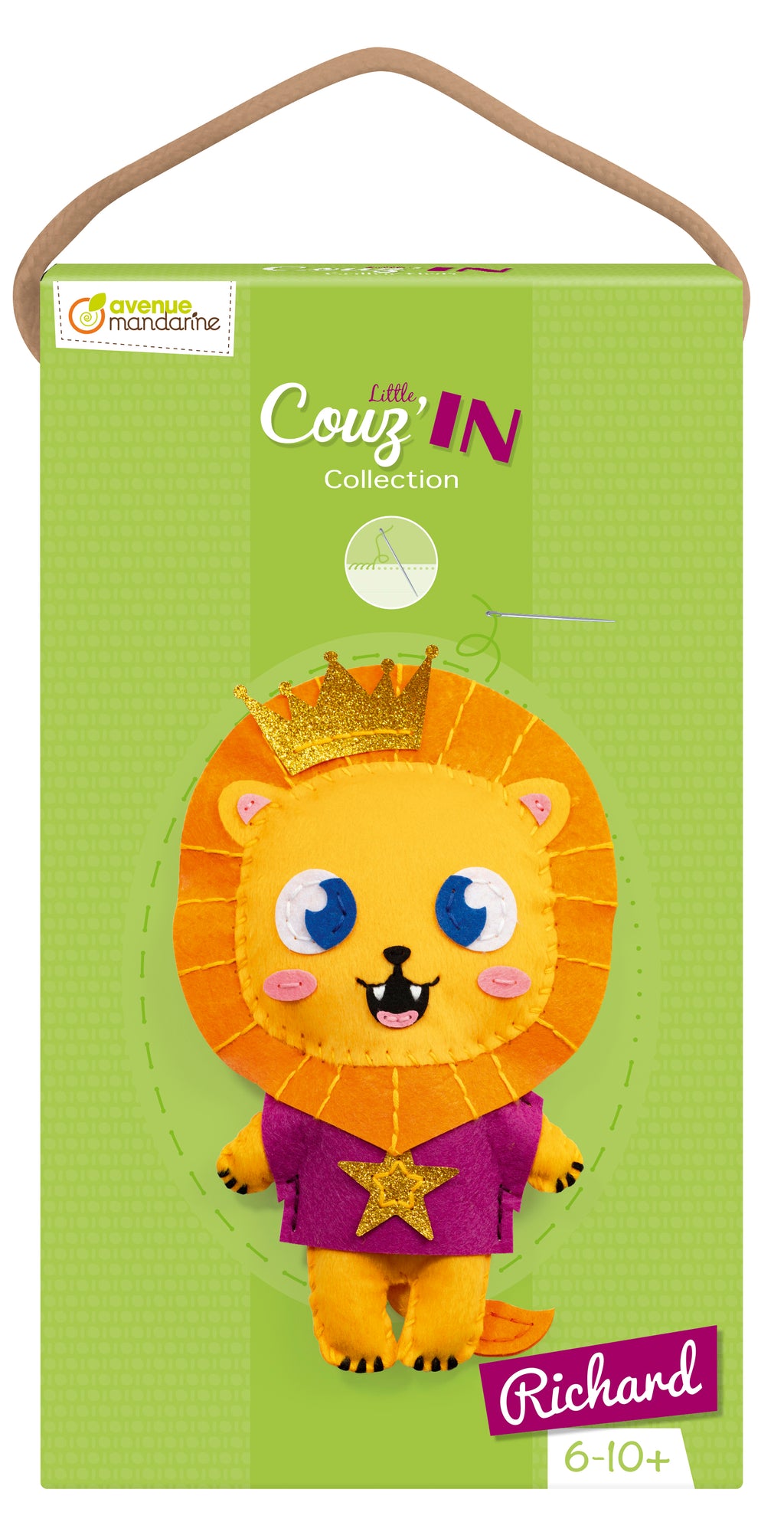 Contient : éléments de feutrine pré-troués, éléments de feutrine adhésifs, rembourrage, 1 aiguille en plastique, 4 bobines de fils, ruban.