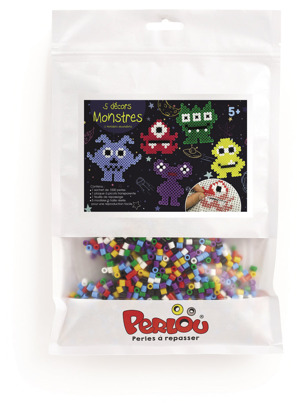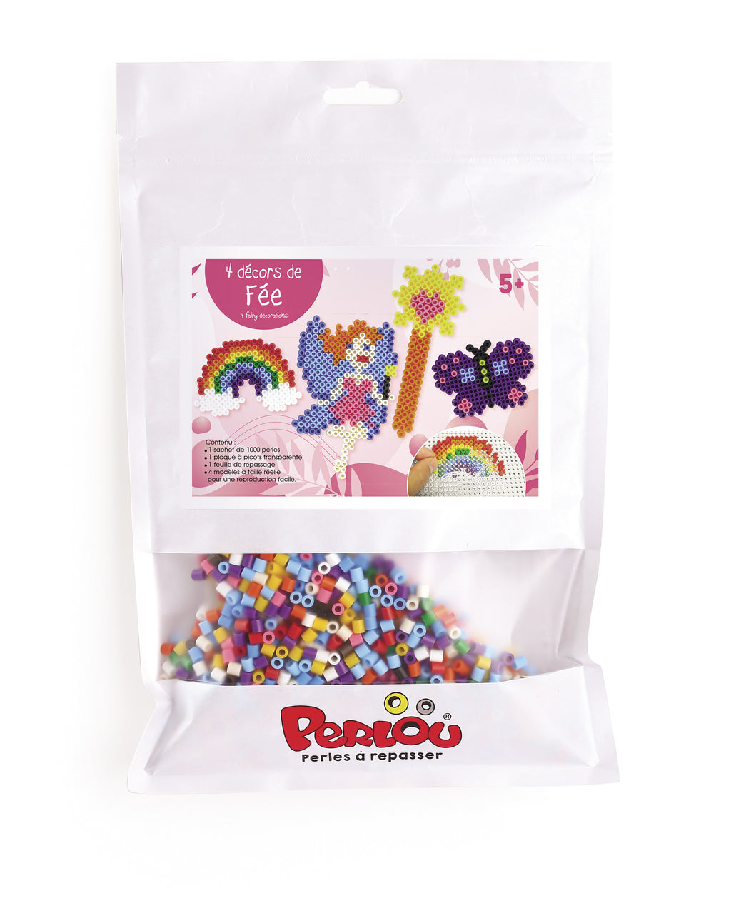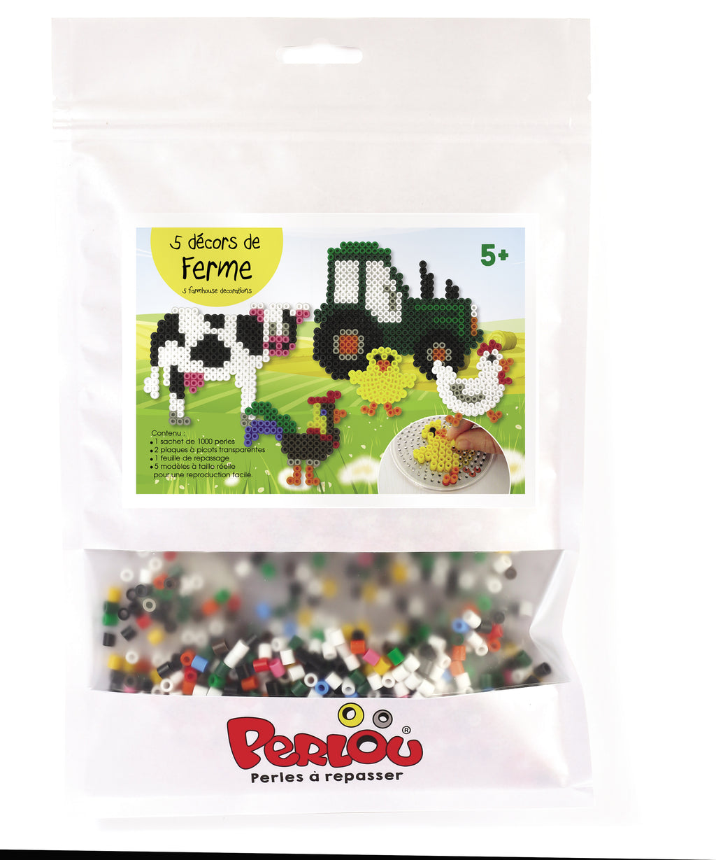 Kits d'activité Perlou comprenant tout le nécessaire dans la création du motif (plaque, modèle, feuille de repassage…). A partir de 5 ans et +.