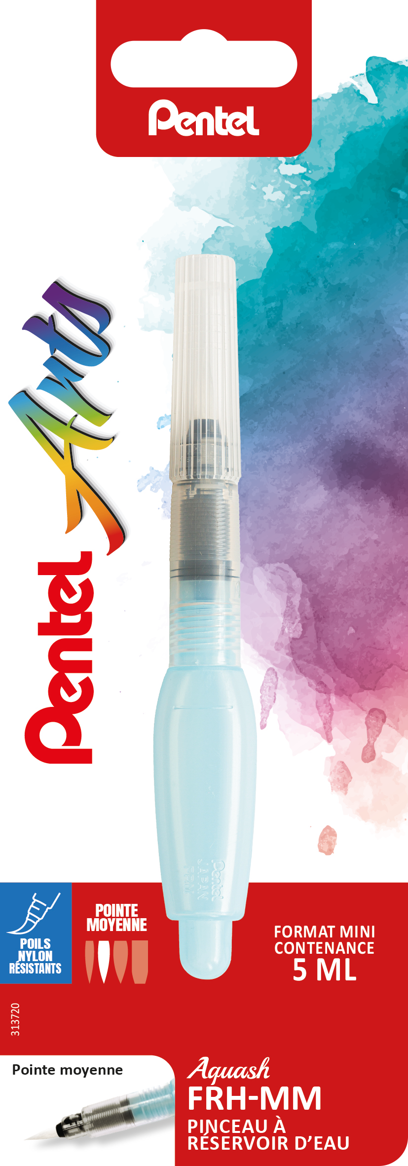 Blister de 1 mini pinceau à réserve d'eau, pratique : l'eau ne se renverse pas et pour les nomades, plus besoin de pot à eau ! Pinceau en poils synthétiques, corps réservoir à remplir d'eau ou de tout liquide diluable à l'eau (encre, aquarelle, etc…)