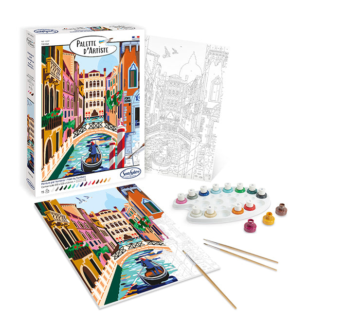 Nos palettes d’artiste contiennent entre 14 et 16 peintures suivant les tableaux et de nombreuses nuances peuvent être obtenues grâce à la pipette doseuse, pour apporter des subtilités aux tableaux. Leur texture satinée aux couleurs subtiles s’applique facilement avec les 3 pinceaux proposés, allant du plus fin pour les petits détails, au pinceau en langue de chat.
