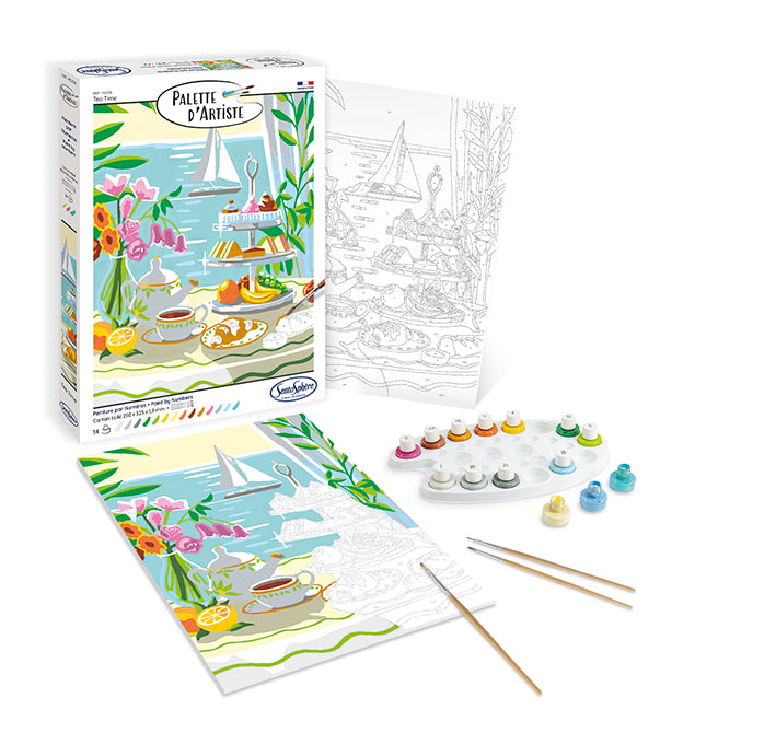 Nos palettes d’artiste contiennent entre 14 et 16 peintures suivant les tableaux et de nombreuses nuances peuvent être obtenues grâce à la pipette doseuse, pour apporter des subtilités aux tableaux. Leur texture satinée aux couleurs subtiles s’applique facilement avec les 3 pinceaux proposés, allant du plus fin pour les petits détails, au pinceau en langue de chat.
