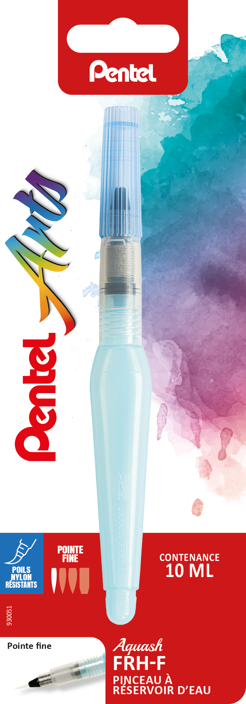 Blister de 1 pinceau à réserve d'eau, pratique car l'eau ne se renverse pas et pour les nomades, plus besoin de pot à eau !