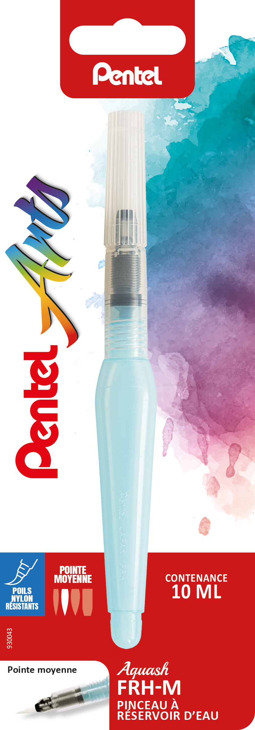 Blister de 1 pinceau à réserve d'eau, pratique car l'eau ne se renverse pas et pour les nomades, plus besoin de pot à eau !