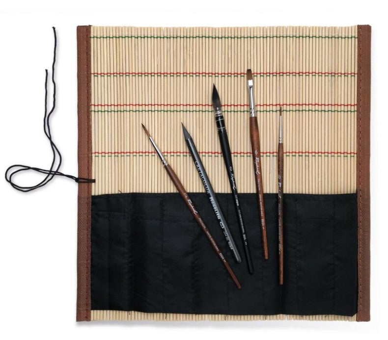 Contenu du pincelier : 1 natte en bambou pour transporter facilement des pinceaux de haute qualité ( 28x28 cm), 1 crayon graphite Monolith pour des esquisses précises.