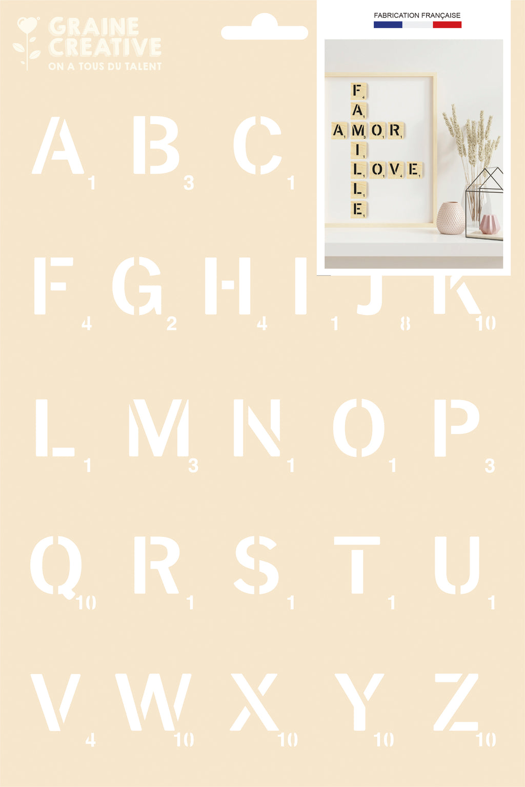 Pochoir imaginé et fabriqué en France pour une décoration personnalisée de son intérieur. Découpe laser pour une grande finesse des détails. Format A4. Lavable et réutilisable à volonté. Pochoir sans emballage plastique, un geste pour l'environnement.