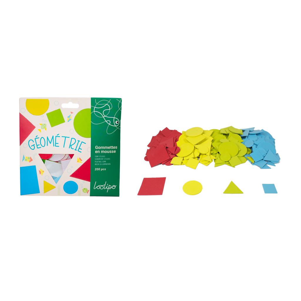 Pack de 200 mousses adhésives géométriques prédécoupées (tailles et coloris assortis).