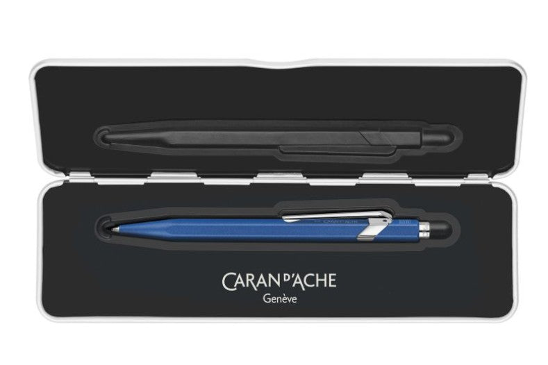 Le stylo bille Caran d'Ache COLORMAT-X Bleu affiche une teinte bleue lumineuse, magnifiée par une finition premium microbillée-éloxée, caractéristique du style audacieux et contemporain de la collection COLORMAT-X.