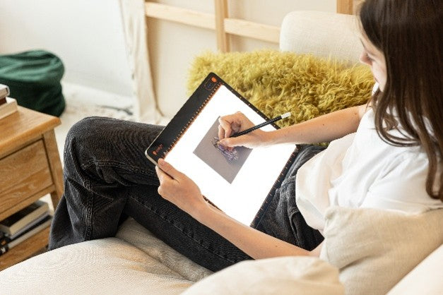 Précision haut de gamme avec un éclairage uniforme. Le Tabla Go est une tablette lumineuse entièrement portable et rechargeable par USB, conçue spécialement pour les artistes, offrant jusqu’à 5 heures de lumière continue. Son format A4, son design sans fil et son poids léger la rendent facile à transporter, où que vous soyez inspiré.