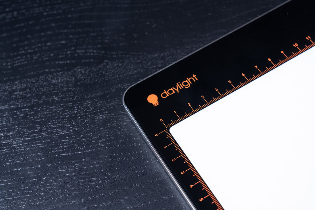 Dotée d’un boîtier en aluminium robuste et d’une surface de traçage résistante aux rayures avec une dureté A6, notre tablette lumineuse garantit une durabilité maximale lors du croquis. Équipée de LED à lumière du jour ultra-lumineuses de 6 000 K pour une précision des couleurs optimale, et d’un variateur à 3 niveaux, vous pouvez ajuster l’éclairage uniforme en fonction de l’épaisseur du papier ou du tissu. Utilisez le bord gradué (en pouces et en centimètres) pour une précision accrue lors de vos créations ou traçages.